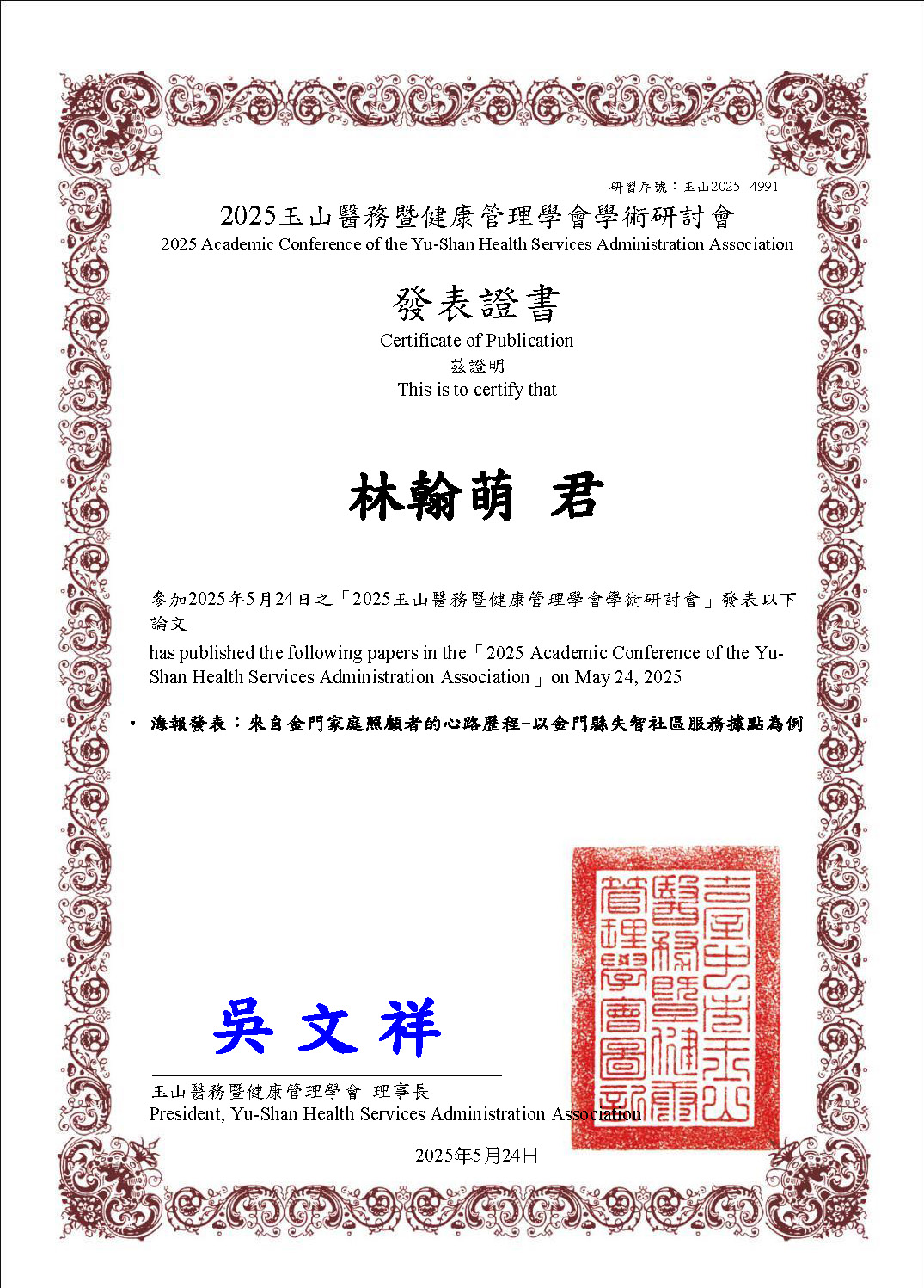 林翰萌同學參加 114.05.24【2025玉山醫務暨健康管理學會學術研討會】