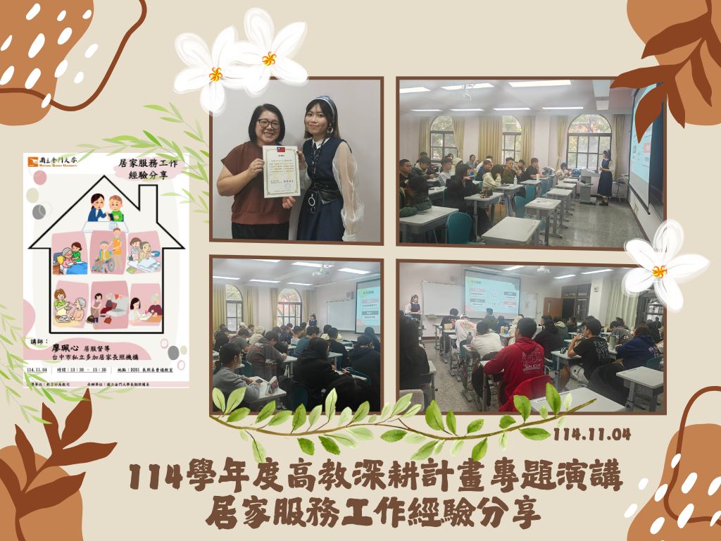 114年度高教深耕計畫專題演講-居家服務工作經驗分享